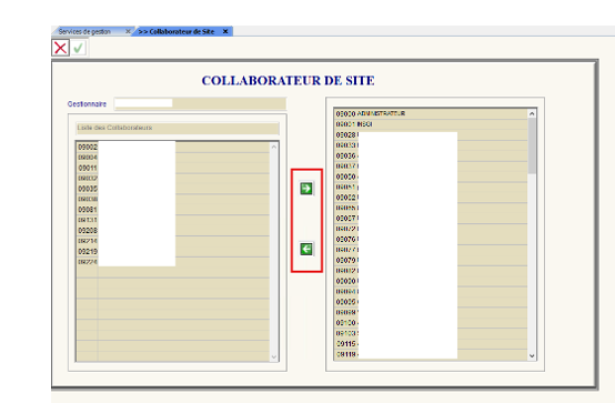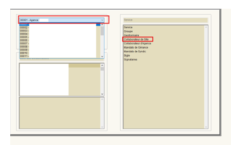 - Sélectionner l’agence / le service de gestion concernée puis cliquer sur Collaborateur de Site