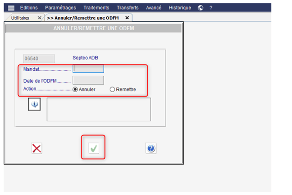 Indiquez le mandat, la date de l’ODFM ; choisissez Annuler et valider