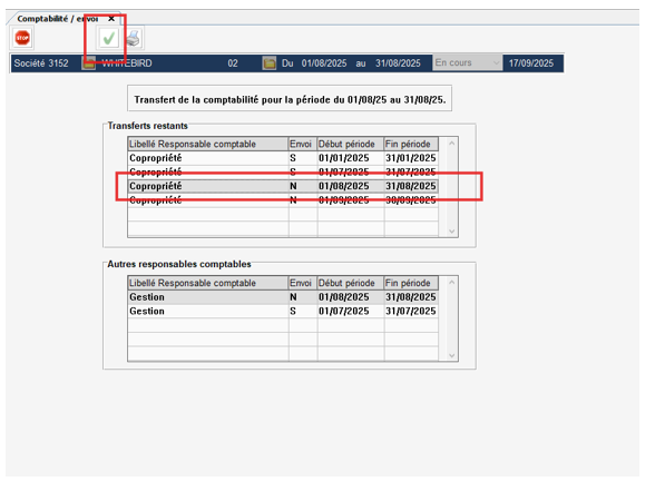 Une fois le traitement terminé il convient de réaliser les transferts comme pour les appels de fonds depuis le module de transferts