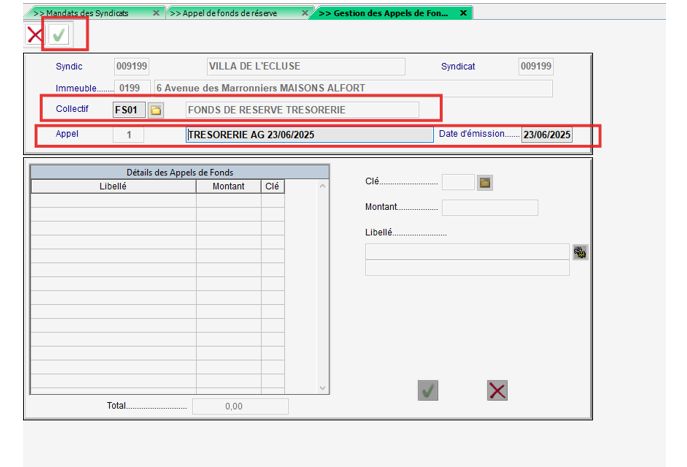 - Choisissez le collectif, entrer le nom de l’appel er la date d’émission puis cliquer sur valider en haut