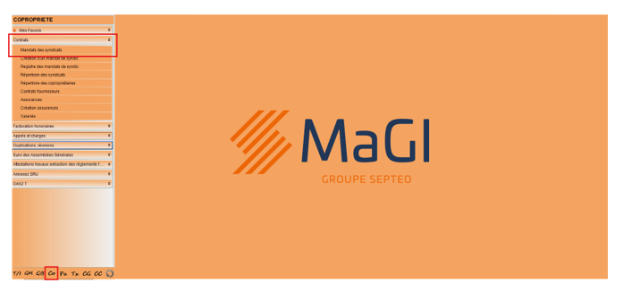 Chemin pour retrouver le module : CO / Contrat / Mandats des syndicats / Usufruit / Nue-Propriété