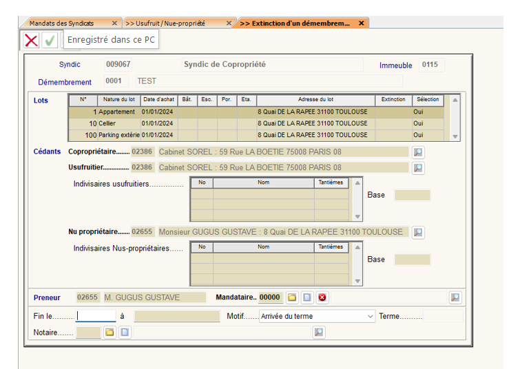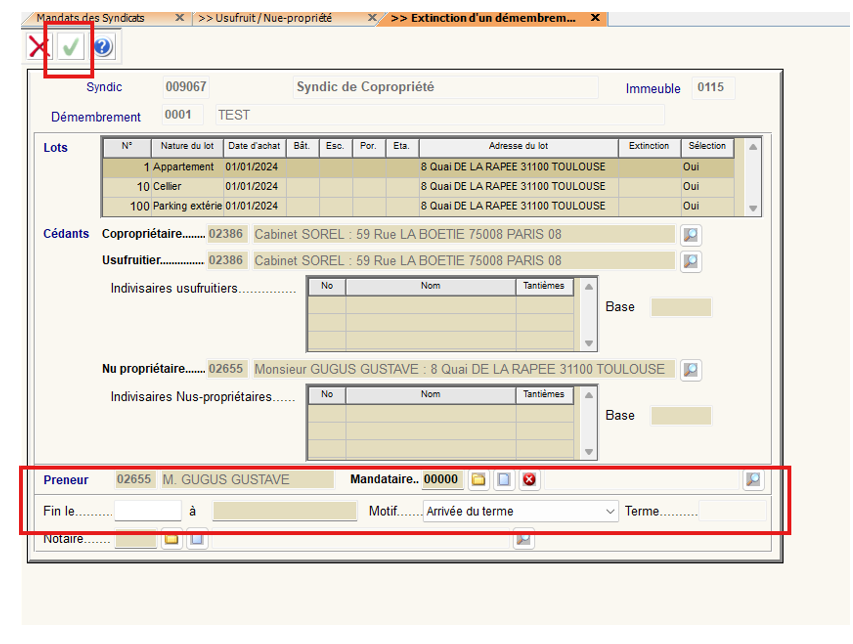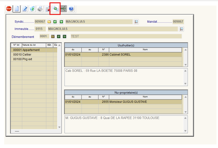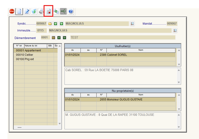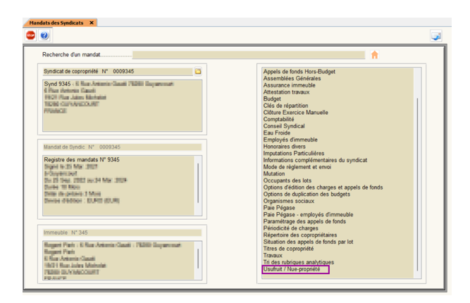 Le module de démembrement se trouve sur le mandat des syndicats et la tâche « Usufruit / Nue-Propriété ».