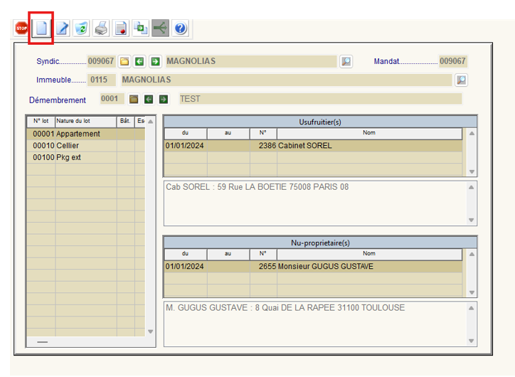 La création d’un démembrement (Depuis l’icône feuille blanche)