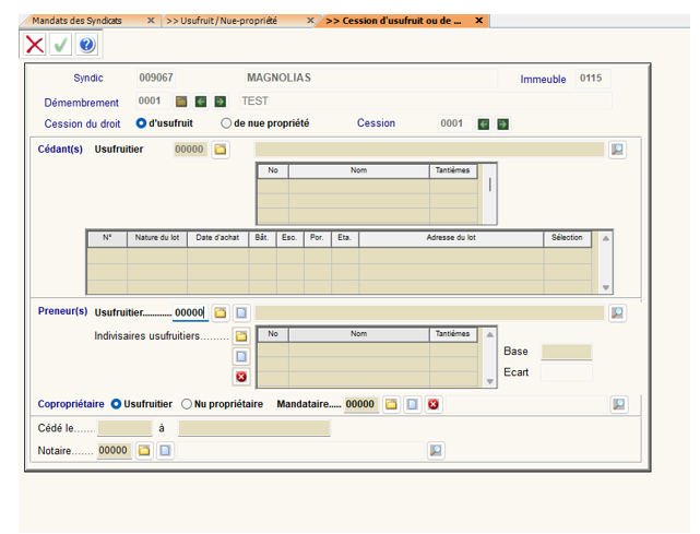 Depuis ce module il est possible de créer une cession de droit relatif à un démembrement déjà existant