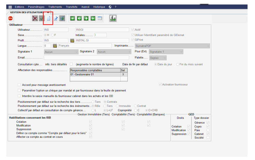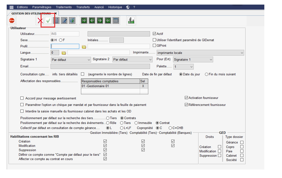 En profil administrateur vous pourrez alors sélectionner l’icone création et remplir les champs demandés avant de cliquer sur valider.