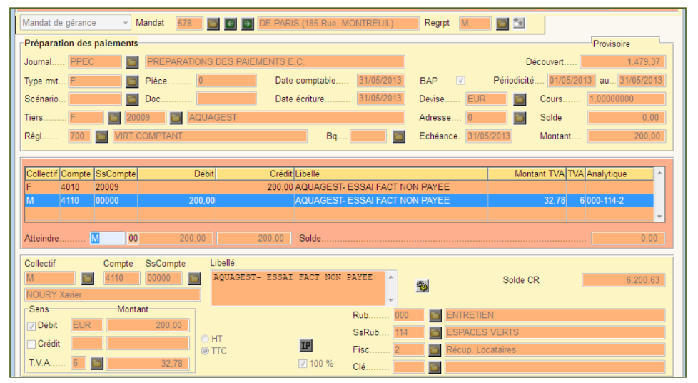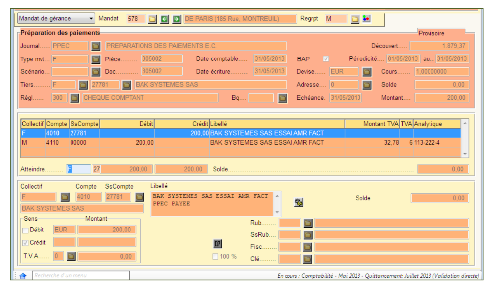 A l’arrêt de la comptabilité du mois en cours, le système détecte alors toutes les factures non réglées et propose soit de les comptabiliser dans le mois en cours soit de reporter l’échéance sur un mois suivant.
