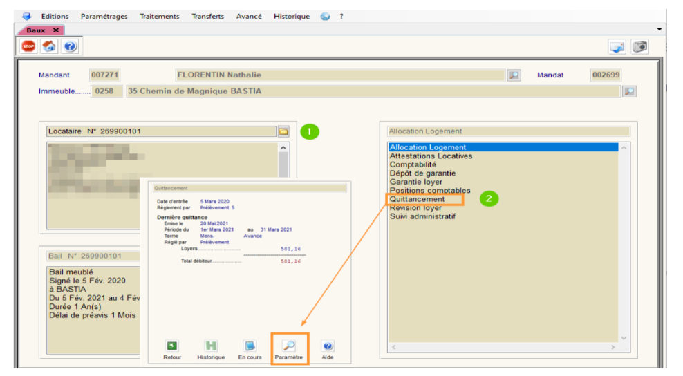 Pour retrouver les documents à générer pour le départ du locataire, il faut vous rendre dans l’écran suivant en passant par le chemin suivant :
