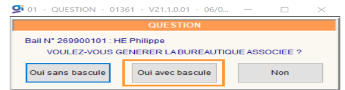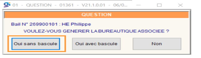 Lorsque vous terminez la résiliation de votre bail, le programme vous demande si vous souhaitez générer la bureautique associée à l’évènement. 3 réponses sont alors proposées.