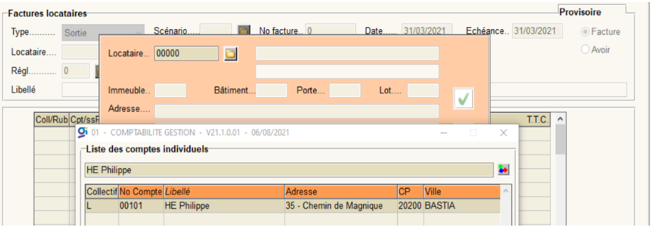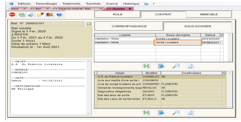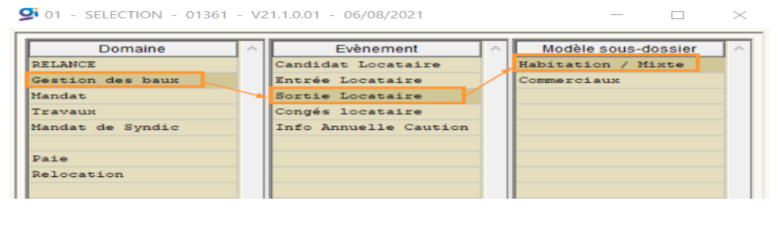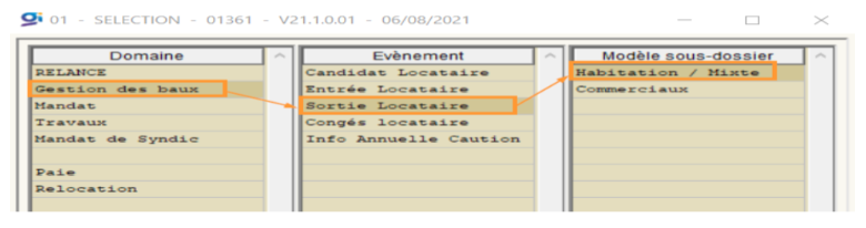 Le programme vous ouvre alors une fenêtre, vous permettant de choisir l’évènement correspondant à la sortie locataire.