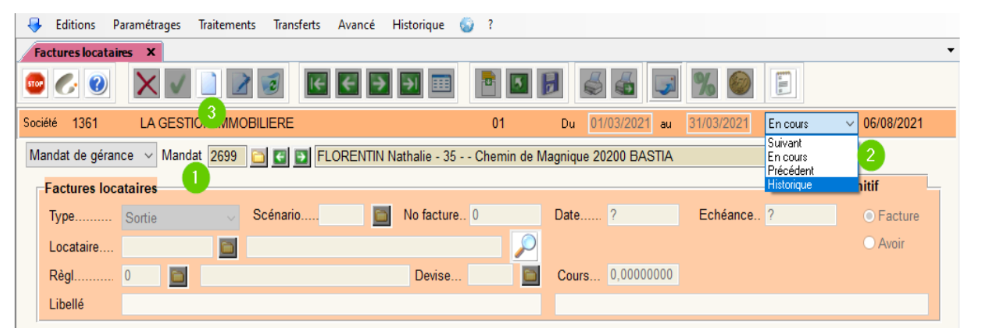 13. Editer la définitivement pour comptabiliser la facture sur le compte du locataire.