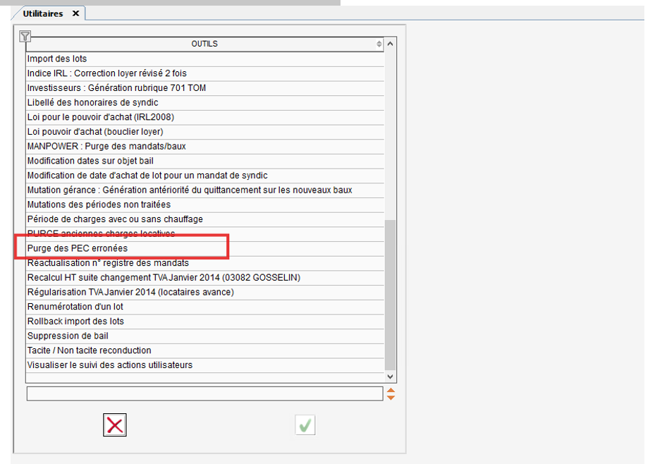 Comment faire la purge des PECS erronés ? Se rendre dans le Menu Avancé / Utilitaires clients Cliquer sur Purge des PECS erronées Sélectionner le mandat relatif puis valider