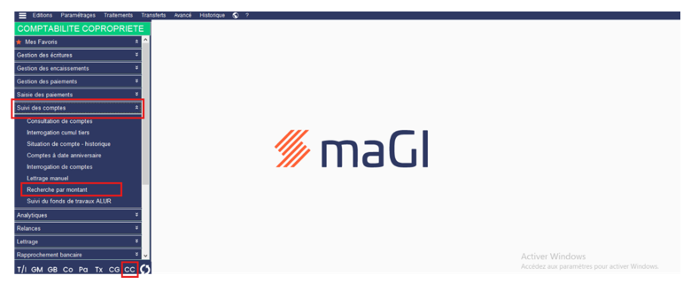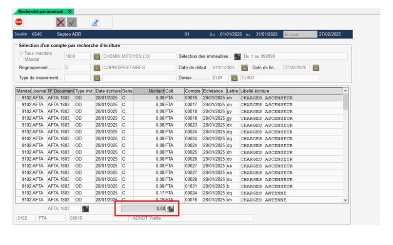 Une fois la validation faite il faudra sélectionner la somme souhaitée en recherche