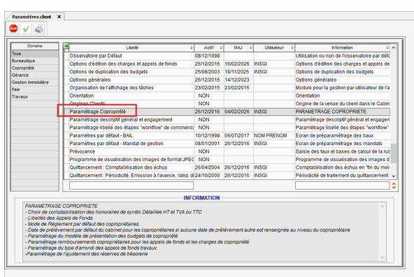 - Se rendre dans le Menu Paramétrage copropriété