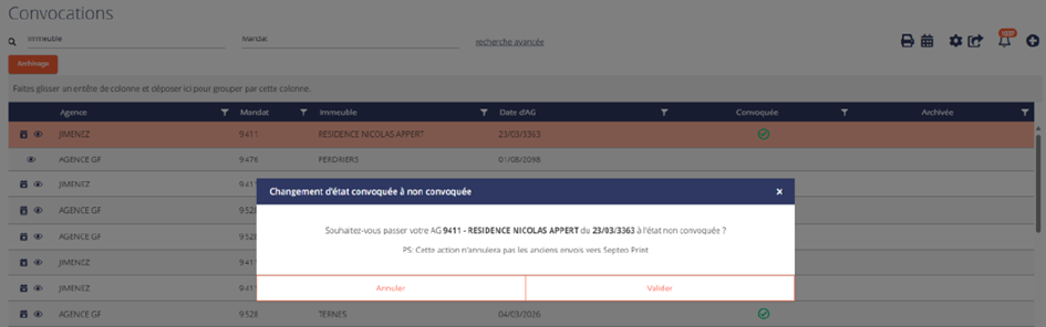 Attention : la modification de convocation après envoi pour impression auprès des services Septeo Print n’annule pas le premier envoi.