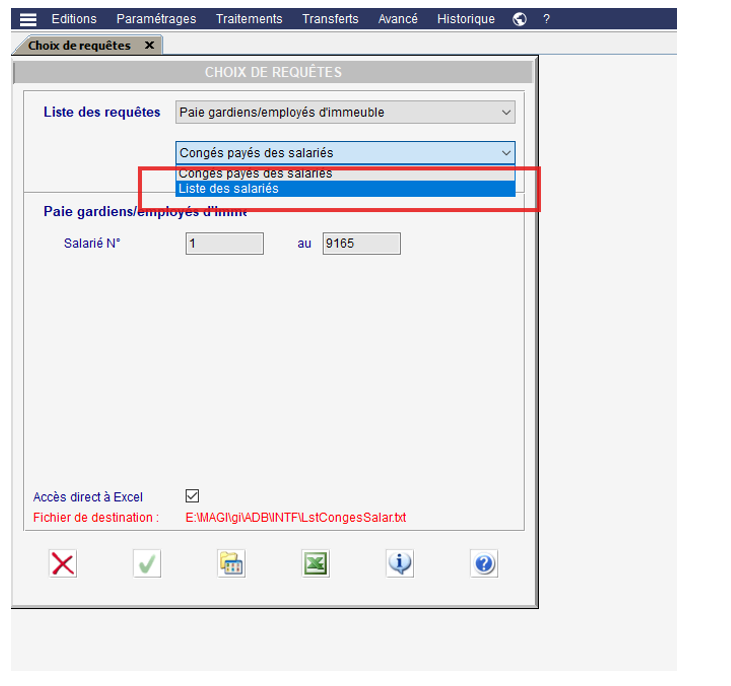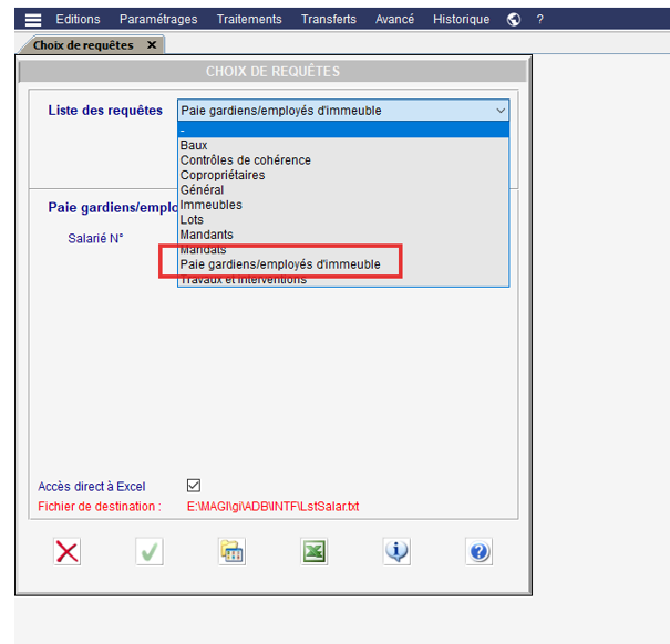 - Sélectionner Paie gardiens/employés dans la première liste déroulante